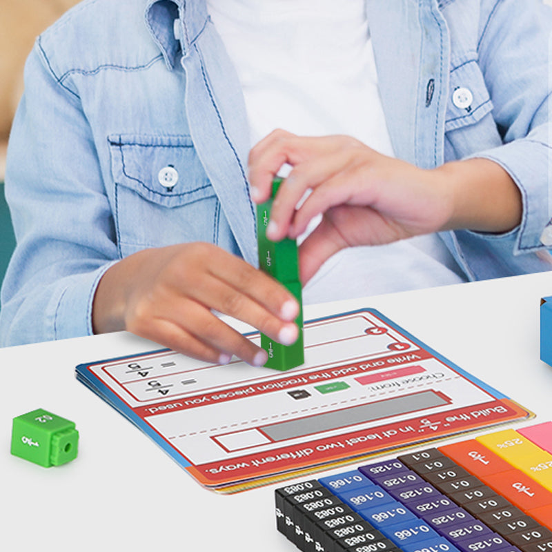Med fargerike, sammenkoblede kuber og praktiske utfordringer vil barnet ditt fysisk se hvordan ½ = 2/4 = 0,5 - og faktisk forstå det.