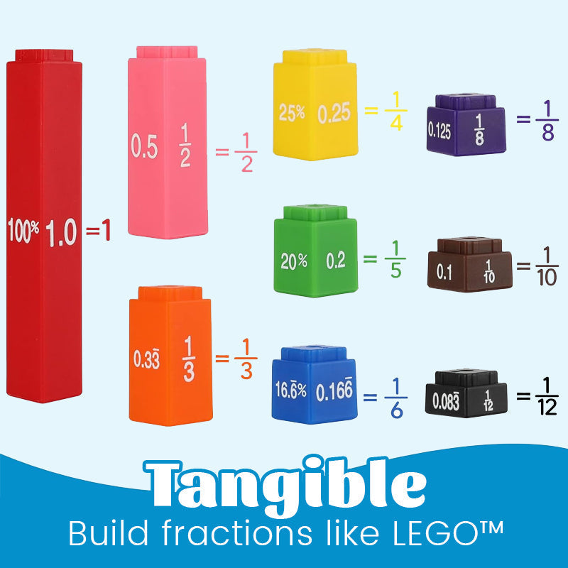 Si farvel til frustrerende regneark og forvirrende kakediagrammer - Equivalency Cubes forvandler brøkregning til noe du kan holde, stable, bygge og elske.