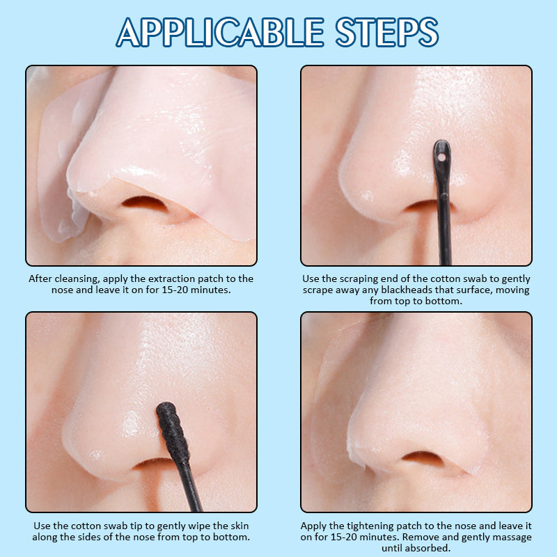 2️⃣ Bruk den medfølgende dobbelt-endede bomullspinnen til å skrape bort synlige hudormer.