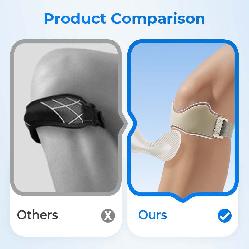MÅLRETTET STØTTE TIL SENEN: Ergonomisk V-formet design demper trykket, støtter patellarsenen og masserer kneskålen for å avlaste stress under fysiske aktiviteter.