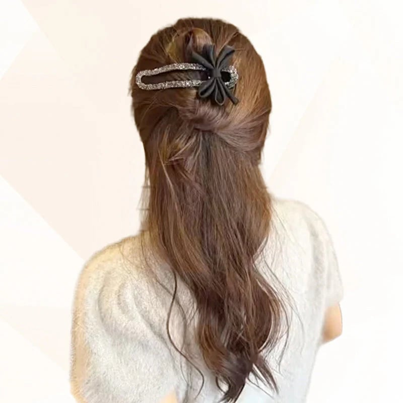 Pakken inneholder: 1*Glitrende elegant svart hårspenne med sløyfe for oppsatt hår